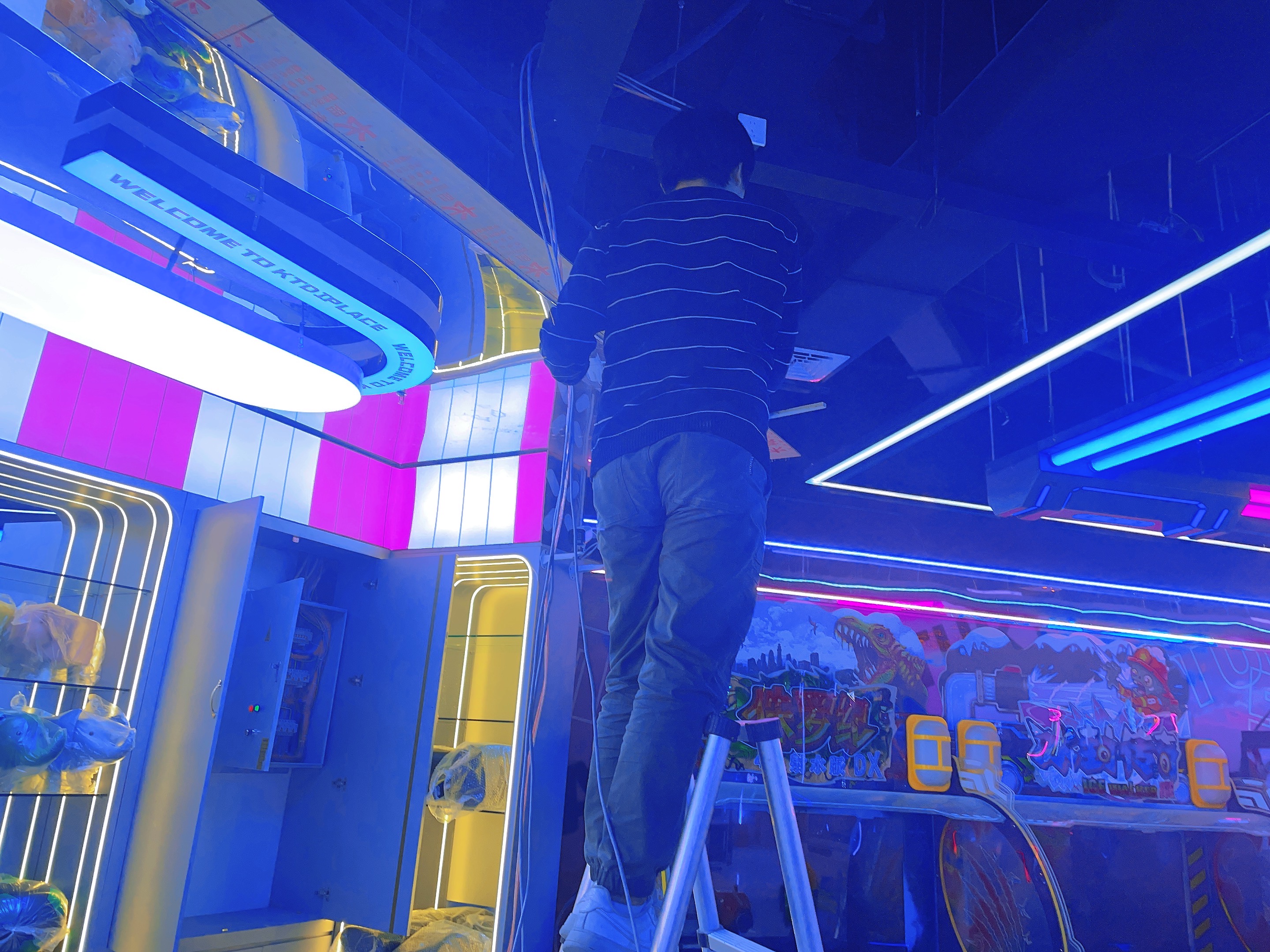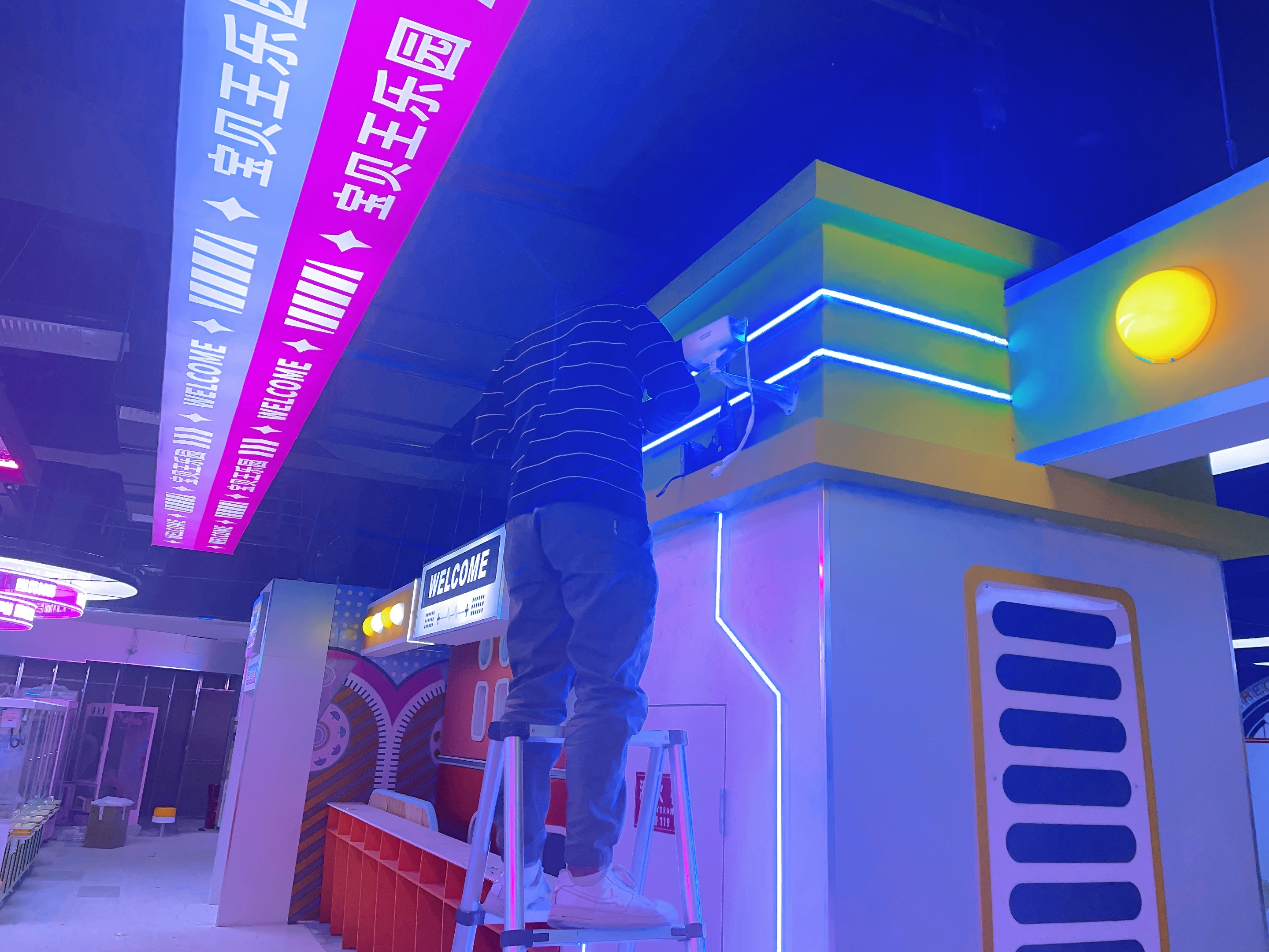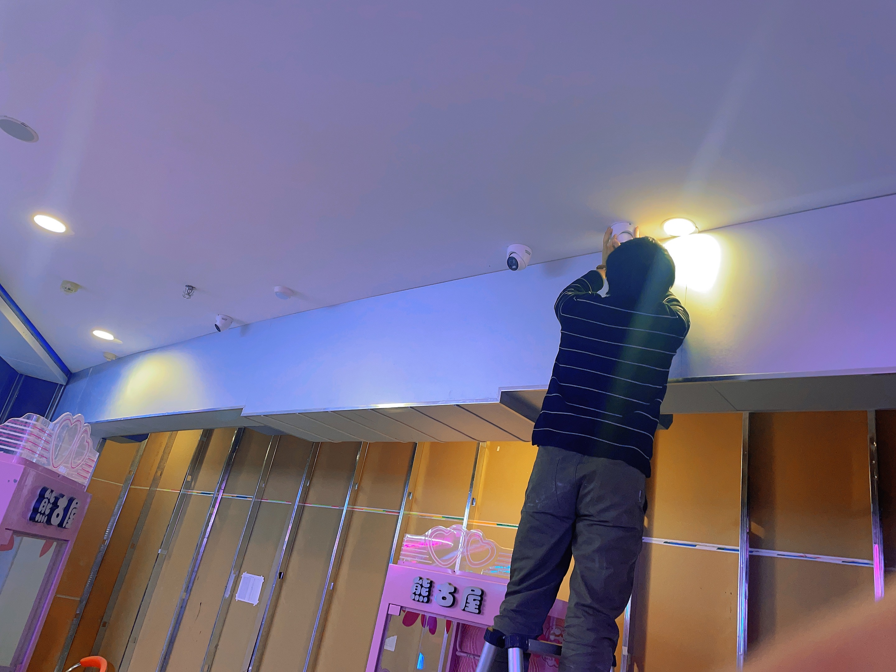 2023年12月信陽萬達(dá)廣場二樓寶貝王,監(jiān)控安裝,網(wǎng)絡(luò)布線,施工照片!監(jiān)控采用??低?00萬雙光全彩POE攝像機(jī),線材采用普天天紀(jì)六類網(wǎng)線