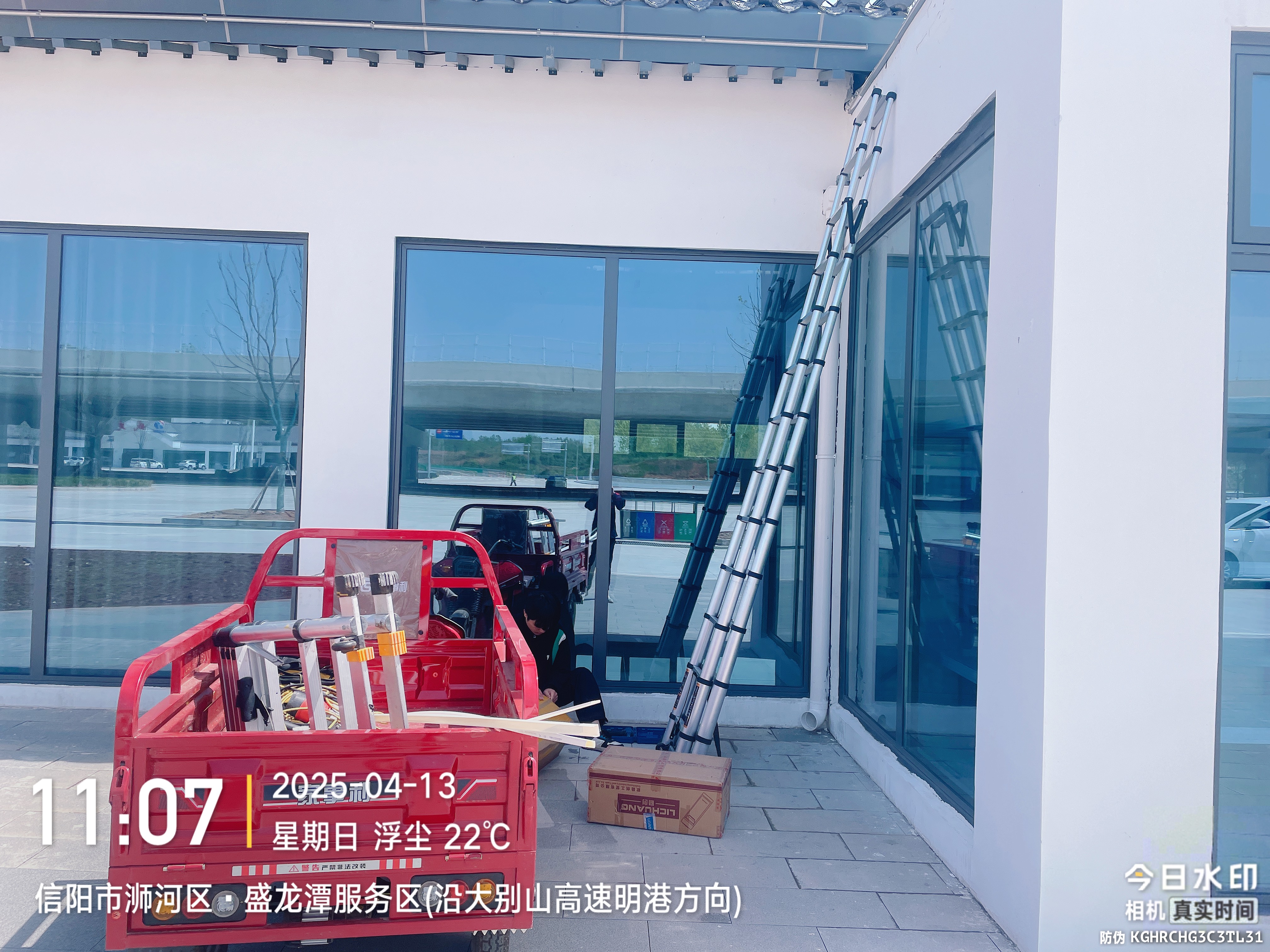 2025年4月13日,河南交投集團信陽段服務區(qū)(盛龍?zhí)斗諈^(qū))司機之家監(jiān)控項目安裝現場!