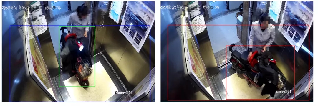 若電瓶車檢測到并首次報警,規(guī)則框會變紅,持續(xù)約3-4S;之后持續(xù)檢測到電瓶車,則以綠色目標(biāo)框疊加顯示。